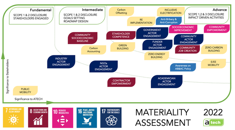 ATECH ENERGY applied the Multi Helix model to conduct our inaugural materiality assessment involving multiple stakeholders. We released the findings in 2022, with a focus on Sustainable Development Goals (SDGs) 7, 8, 10, 16, and 17.